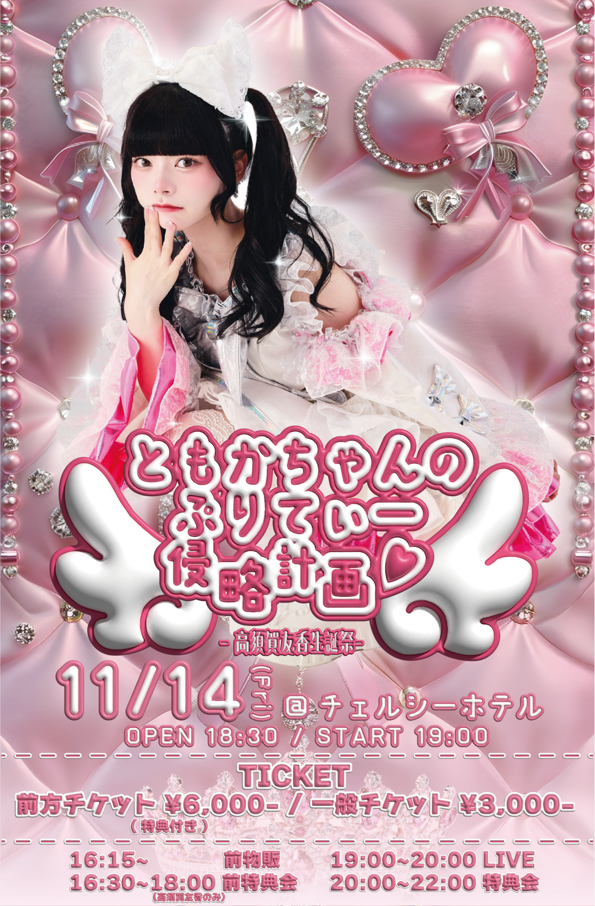 2025/11/14 (金)開催の『高須賀友香生誕祭「ともかちゃんのぷりてぃー侵略計画♡」』に際し、ファンクラブ先行抽選を実施いたします。