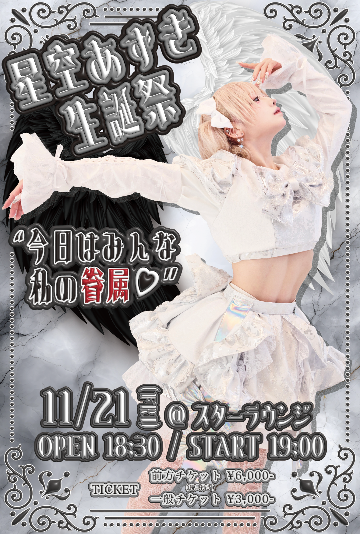 2025/11/21 (金)開催の『星空あずき生誕祭「今日はみんな私の眷属♡」』に際し、ファンクラブ先行抽選を実施いたします。